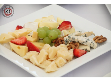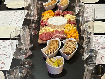Selection of curated fruits, cheeses, and snacks to compliment the specific wine selection.